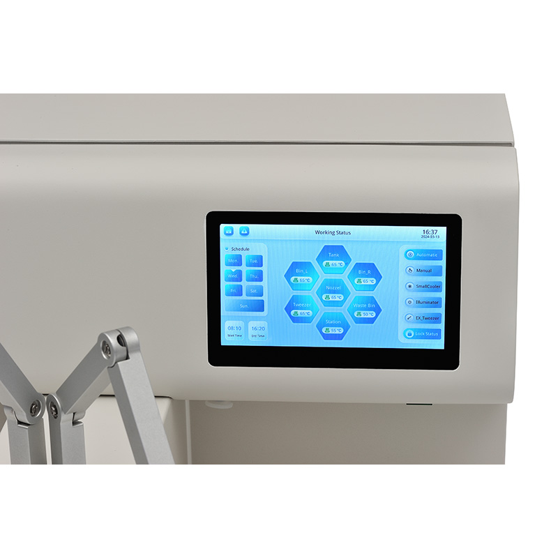 ◇ 大容量制冷工作臺:支持?jǐn)[放10排x7個不銹鋼包埋底模或約140個包埋盒